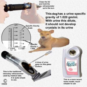 Purchase a refractometer, learn how to read this simple device and see that the specific gravity of your dog’s urine stays low. (read here) .